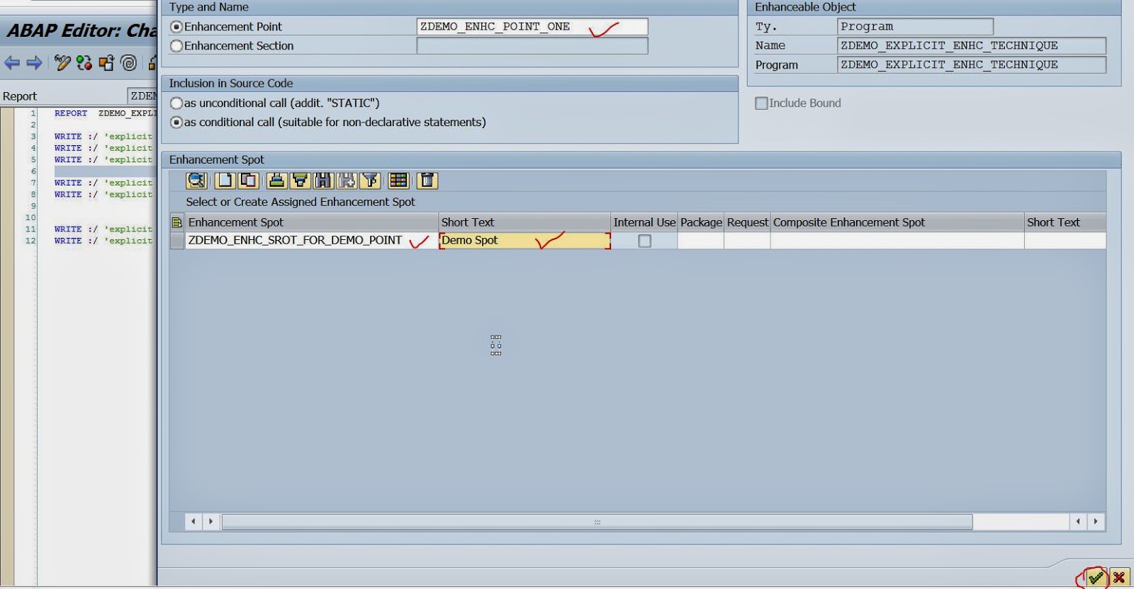 Creating Enhancement point really makes sense to enhance SAP standard program where the business needs some specific functionality that could not be achieved by implicit enhancement technique. In the below demo the explicit enhancement technique is described in a Z program.